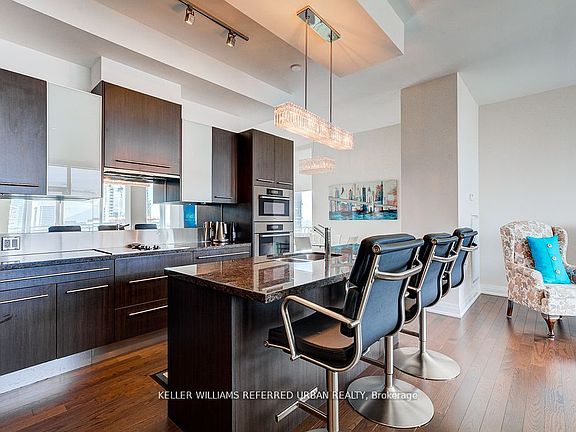 Luxurious & Iconic Festival Tower Home Of (TIFF) Toronto International Film Festival! Absolutely Stunning And Extremely Rare 3 Bdrm Corner Suite W/ Breathtaking Panoramic Skyline And Lake Views, Loads Of Natural Light, Floor To Ceiling Windows, Kitchen Island Granite Counters, Freshly Painted, All Luxury Furniture And Household Equipment, Master Retreat W/ Private Balcony, 5 Pc Spa, Inspired bath And Organized Walk In Closet. This Elegantly Designed Suite Includes: 1 Locker & 2 parking.