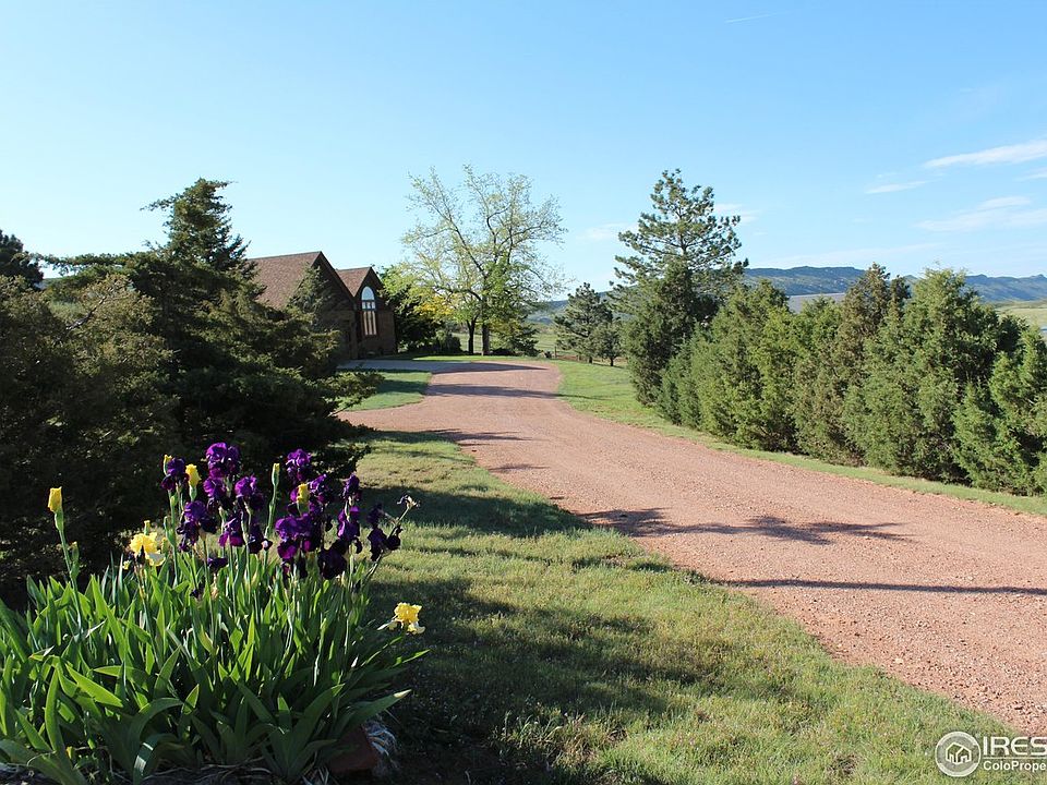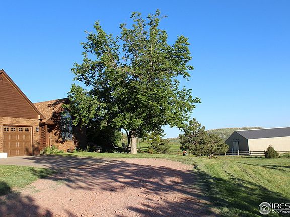 35 acre horse property 15 min to North Fort Collins, with amazing views to improve when Glade Reservoir is completed. With National Forest access from Bonner Peak Ranch, this property is set up for Equine riders. 3 separate pastures, arena, round pen, and a fabulous drive-through 48 x 60 Cleary barn with 4 Stable Master stalls, 50ft runs, auto-waterers, tack room, 2 hitching posts, and a 30 amp RV hookup. Lots of inside hay, truck/trailer, and equipment storage. (Doors are 12ft wide; 13ft clearance - camper/motorhome size). Ride in Bonner Peak Ranch or short trailer to 6+ trail heads in Roosevelt National Forest and Red Feather Lakes area. The home - up-to-date 3 bed, 2 bath ranch style with fully finished basement and 2 car attached garage. Primary bedroom, 2nd bedroom, bath, kitchen and great room are all on the main level. The GREAT room has views from expansive windows on 3 sides, providing that open and light feeling all day. French doors open to the huge wrap around deck and sunken hot tub with lots of room for entertaining. Lower level has bedroom and bath, laundry plus 3 flex areas for office, sewing/crafts or... Kitchen-granite countertops, stainless steel appliances, to-the-ceiling cabinets; tile floors. Great room-solid oak hardwood floors and is a pleasure to be in any time of day. 1 ADU allowed. Glade Res construction begins fall 2025. The home is approximately 1 mile from the proposed north recreational access area. Reservoir views from deck and dining area when full. Glade Res will provide recreational opportunities moments away.