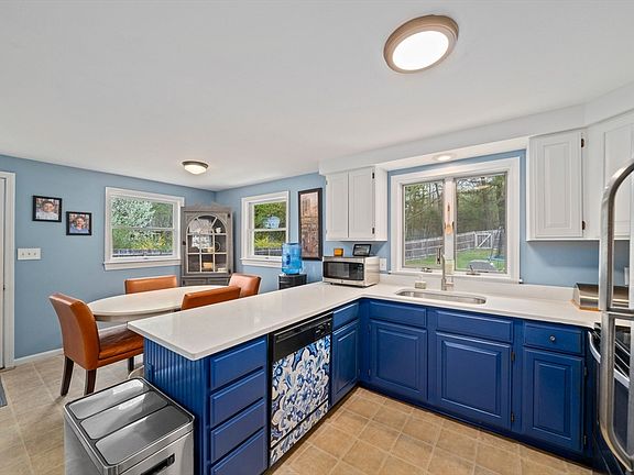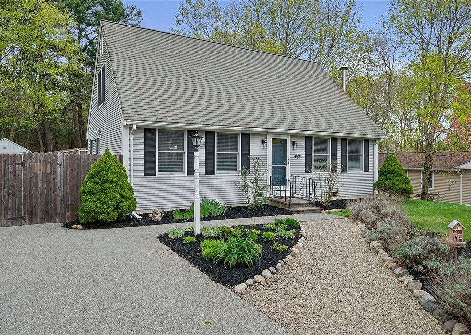 What a perfect home! Move in ready 3 bed, 2.5 bath cape on just under an acre of land in a great Hanover location right near Forge Pond Park. Main level is open floor plan with a cozy living room, open kitchen and fireplaced sitting area with shiplap sitting nook and electric fireplace. The kitchen has stunning quartz counters and all stainless appliances are included. The main level also has a bedroom/office with slider as well as a full bath. Upstairs you'll find two very good size bedrooms, plus the second full bathroom with double granite sink. You will love the lower level finished space with a 14x24 den and half bath. The basement has laundry, wash/dryer included, and offers plenty of storage. Nothing to do but enjoy the back deck overlooking the fully fenced in back yard with oversized shed. Vinyl siding, plenty of parking, 4 bed passing septic, 2019 furnace, 200 amp electric - just move in and enjoy! Showings begin at the OH Thurs 1:30-2:30, OH Sat 10-12 and OH Sun 12:30-2:00