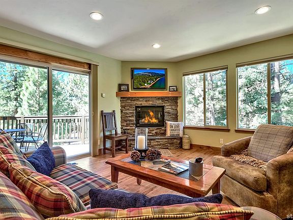 This inspiring Lake Village unit is fully loaded with all the must haves in a Tahoe retreat. Ideally located, this dreamy home offers wooded views from nearly every window and is within a short stroll to endless hiking, biking and cross country ski trails. The inviting living area features a gas fireplace, hickory floors and an outdoor entertaining deck. Custom alder cabinetry with Corian counters grace the gourmet kitchen and both full bathrooms. This living area basks in natural sunlight year round. The family room, 2 spacious guest bedrooms, guest bath and a full laundry room are located on the lower floor. The envious HOA amenities include an outdoor pool, spas, clubhouse, tennis courts and a delightful children's playground. All within a few short minutes to the downtown corridor, delicious restaurants, world-class golf and skiing and, of course, the stunning beauty of Lake Tahoe. Furnishings negotiable so this home could be sold turn-key and ready to enjoy immediately.