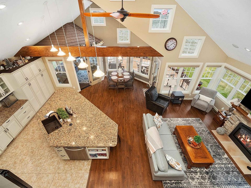*CONTINGENT - ACCEPTING BACK-UP OFFERS* Luxury lake life is waiting for you at this architectural masterpiece designed by Bill Brenneke! This custom-built home has been immaculately cared for and offers beautiful and serene sunset views of Lake George with 66' of lake frontage and sandy bottom. This is your perfect forever home or home away from home. The main level features a spacious and open floor plan with vaulted ceilings to the upper level. Enjoy cooking in the modern kitchen featuring custom cabinetry, beautiful quartz countertops, a large breakfast bar, and plenty of pantry space. This area opens to the living room and into the dining area and the amazing views continue. The floors are covered in stylish laminate fooring and heated ceramic tile. The impressive primary suite features a beautiful tile walk-in shower, and double vanity with custom lighting, and a walk-in closet. Also on the main level is another guest bedroom and 2nd full bath, a quaint and cozy 4 seasons room, a laundry room, and even a private retreat for your pet. Upstairs you will find 2 additional bedrooms and a full bath. The attached three car garage features an impressive workshop with attic storage above. Spend your days outside enjoying the view on the stamped concrete patio and evenings around the fire pit. Dock your boat at your back door on the 80' pier that is included and enjoy the fishing, swimming, and boating on Lake George this summer! Lake George is a very desirable ski lake complete with it's own law enforcement officer who patrols on the lake. This property is complete with a 25x35 outbuilding to store your boat(s) and lake toys.