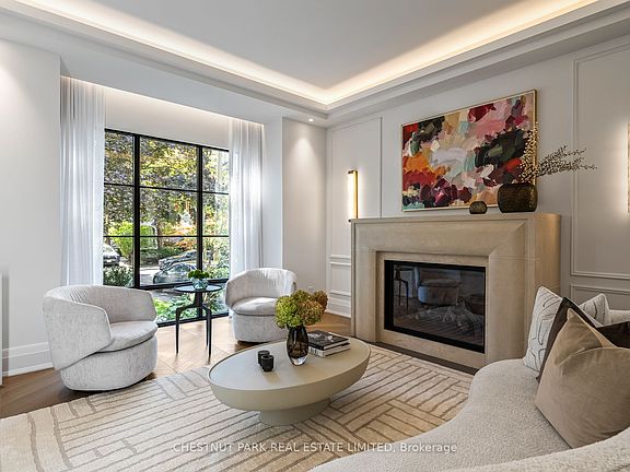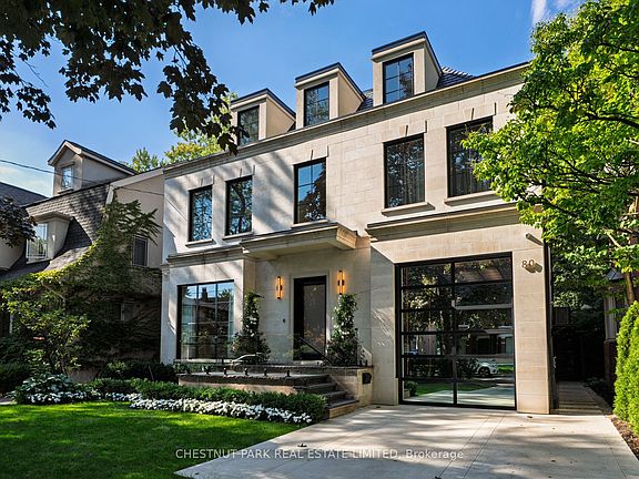 In the heart of South Hill, this custom-built limestone home offers more than 7,500 square feet of carefully designed living space with every modern convenience. Designed with scale and functionality in mind, the interiors are filled with natural light, with large principal rooms ideal for entertaining as well as everyday family living.The double-height foyer features integrated closets and heated floors, leading into a wide entrance hall. Formal dining and living rooms are appointed with chevron white oak floors, tray ceilings with recessed lighting, and a gas fireplace. The chefs kitchen offers custom millwork, an oversized pantry and servery, and a curved hood that doubles as a design feature. It flows into the family room with another fireplace and walkout to the landscaped backyard. At its centre is the custom cabana, complete with skylights and a two-piece bath, designed as a private retreat steps from the main home.Upstairs a primary suite with a boutique-style walk-in closet and spa ensuite, five spacious bedrooms and five bathrooms, laundry room and a large sun filled study. Other highlights include a heated driveway and front steps, an elevator, a 12 person theatre, an oversized home gym, and a 1,000+ bottle wine cellar.The garage includes a side entrance and direct access to the mudroom, integrated lighting, mirrored doors, and capacity for a lift.The lower level expands the living space with a large recreation room and walkout to the backyard, an open gym, a guest or nanny suite, a second laundry room, and lots of storage.Every feature has been considered to create a home that balances luxury, comfort, and practicality in one of Torontos most sought-after neighbourhoods.