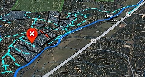 This property is wooded and rolling. You are less than a mile from the 22,176-acre Mark Twain National Forest ... public ground where you can hunt, ride and explore. Yet you're only about 1.5 miles by road from U.S. 67 for quick and easy access.
