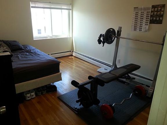 1 bedroom with large closet, 1 full bathroom, 1 living room, 1 kitchen on a 4th floor in convenient location on Main St near park...walk to Square and transportation.. hardwood floors throughout... refrigerator, electric stove inn the kitchen. No heating bills! No broker fee! * Open living/dining/kitchen layout * Ceramic tiled bathroom * Washer/dryer in the building * Balcony with soothing rural views * Off-street parking (deeded) * Elevator * Heat and hot water included * Large windows * Located less then 15 minute walk to Orange line and 1 minute walk to bus line * Cats ok * Built 1964 Viewing available Saturday afternoons.