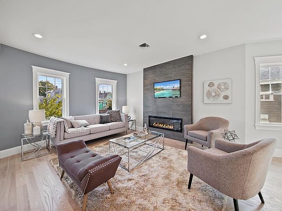 Stunning renovated condo w/ all modern fixtures & finishes! This 4 bedroom/2.5 bath is perfectly situated in East Arlington w/ numerous restaurants & shops just minutes away! The main living level boasts beautiful hardwood flooring, an electric fireplace, and an open concept floorplan! Kitchen complete w/ SS appliances, quartz countertops, large center island, quartz countertops, wine cooler, & exterior access to the back deck - ideal place to enjoy a crisp fall day! Two bedrooms located on main level connected by full bathroom w/ tiled shower/tub. An additional half bath completes the first floor. Upstairs you will find the spacious primary bedroom which is bright and sunny and has a walk-in closet w/ custom built-ins. Beautiful private bathroom w/ dual vanity, walk-in shower w/ tiled walls & stone floor. Separate space which can be used as a sitting room or office. Washer/dryer hookups available in unit. Paved driveway w/ shared backyard. Don't let this be the one that got away! Tenants pay utilities; water/sewer, gas, electricity