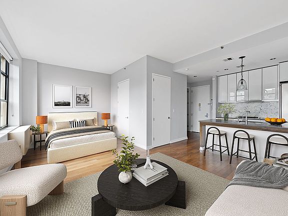 Welcome to this rarely available loft-like studio and convertible one bedroom home. This incredible space combines comfort and style in the most delightful way. With picturesque, open-sky views of Brooklyn that greet you as you step inside, this spacious home offers versatility and adaptability to suit your needs whether you prefer a one-bedroom layout or a more open concept.