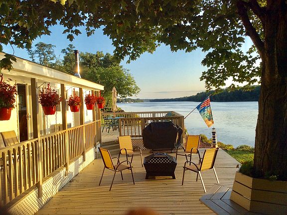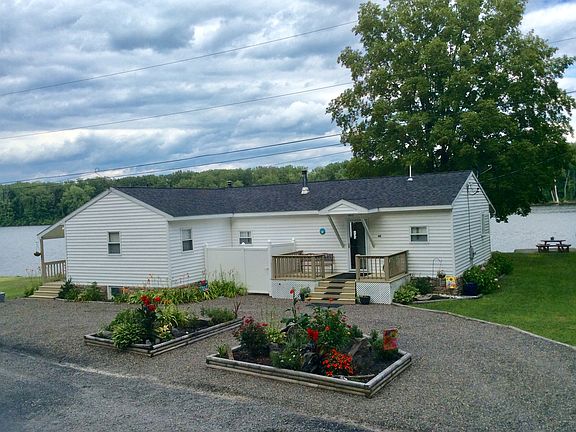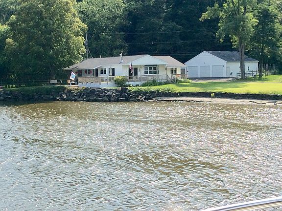 Well maintained Waterfront Ranch Home on a private road with 100 foot on the Hudson River in New Baltimore NY. Beautiful views in both directions. Large open floor plan that flows from the kitchen to the living room with 2 sliding doors and French Doors that lead to a wrap around deck. Home Features Large eat in Kitchen with island stove top, electric wall oven, and dishwasher. Tiled floor in kitchen and entrance way. Living Room with hard wood floors and wood burning stove with tile surrounding it. 2 Bedroom , 2 Bath. Utility Room with washer, dryer, furnace, and electric water tank. 3 Bay Garage, with lots of storage Separate Wood Shed that hold approximately 5 cords of wood Additional storage shed for seasonal items in rear of proper