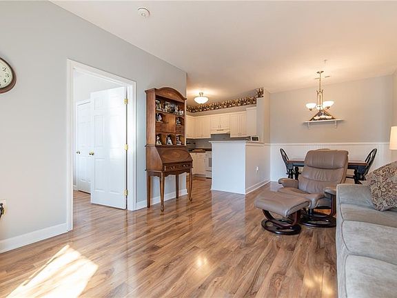 This lovely, extremely well maintained condo with stunning engineered hardwood floors features a porch with a peaceful river side view. Bright afternoon sun fills the unit with light. Very young, high efficiency Navien Hot Water tank and new updated AC condenser make for a low maintenance costs. Stand up shower in 2nd bathroom with new glass door and tub shower in the primary bathroom provide the ultimate convenience. Dishwasher, Stove, Refrigerator, Stack Washer & Dryer transfer with the sale. New marble top to the kitchen knee wall finish off the space elegantly. The clubhouse features a seating area, gym, grilling area and pool for member's convenience. Check out 360 tour to view the beautiful open concept design. First floor unit with a garage doesn't come up very often so don't delay and schedule your showing today!