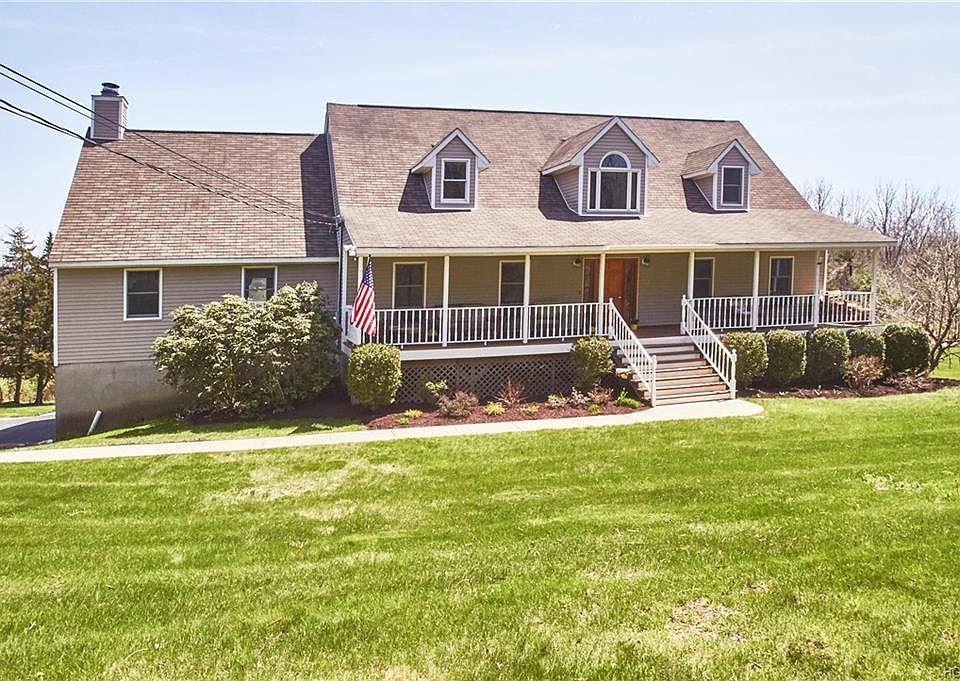 Custom built Capecod set on 2.5 private acres with breathtaking views located in bucolic Warwick, NY. A fabulous yard, large deck, and above ground pool make this the outdoor lover's dream. A separate pole barn/garage is perfect for car enthusiasts, artist, woodworker. Designed with care and a well-thought floor plan with entertaining top of mind as evidenced from the moment you approach the rocking-chair porch. Impressive interior w/wood floors and sun-filled rooms including a dining room w/wall of windows, large eat-in kitchen w/center island and counter seating flowing seamlessly into a dramatic family room w/cedar vaulted ceiling and a Ruegg Fireplace w/granite hearth. Finishing off the main level is an office and master bedroom en-suite. Upstairs finds 3 large bedrooms plus a full bathroom. A finished walk-out lower level offers flexible space. Close to Warwick's downtown, golf, skiing, parks, spas, wineries, breweries, and within 60 min. to the GW Bridge. A must see!