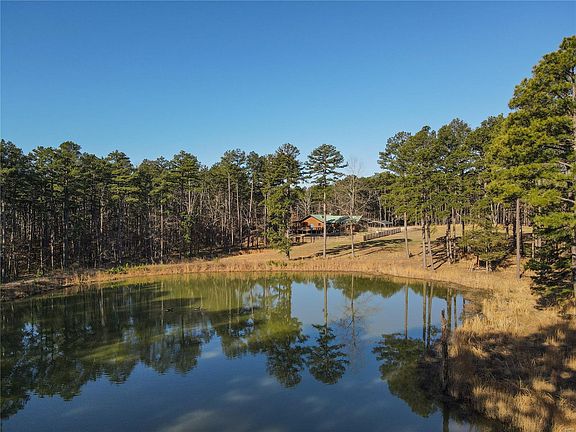 Welcome to your own private estate at the edge of town! Beautiful custom 4 bed, 3 bath, 3556 +/- sqft home on 37.25 acres bordering thousands of acres of National Forest. Remodeled kitchen featuring granite countertops and backsplash, exposed beams, and hardwood floor throughout. 2 beds/2 baths upstairs, the master suite featuring a walk-in closet, marble shower, soaking tub, and granite countertops. The fully-finished walkout basement includes 2 beds, 1 bath, custom fireplace, storm shelter, and beautiful wood ceiling made from lumber cut on-site. Spacious, fully-fenced yard with 7 gates. The stocked pond attracts tons of wildlife: turkeys, deer, geese, turtles etc. The large wrap-around deck covers 2 sides of the home offering ample space for enjoying your own private view of nature. Established trail system for hiking/UTVs. Barn/workshop with 220v power and propane heat. Paved access, just 1.5 miles to the school and other amenities. Homes like this don't hit the market often!