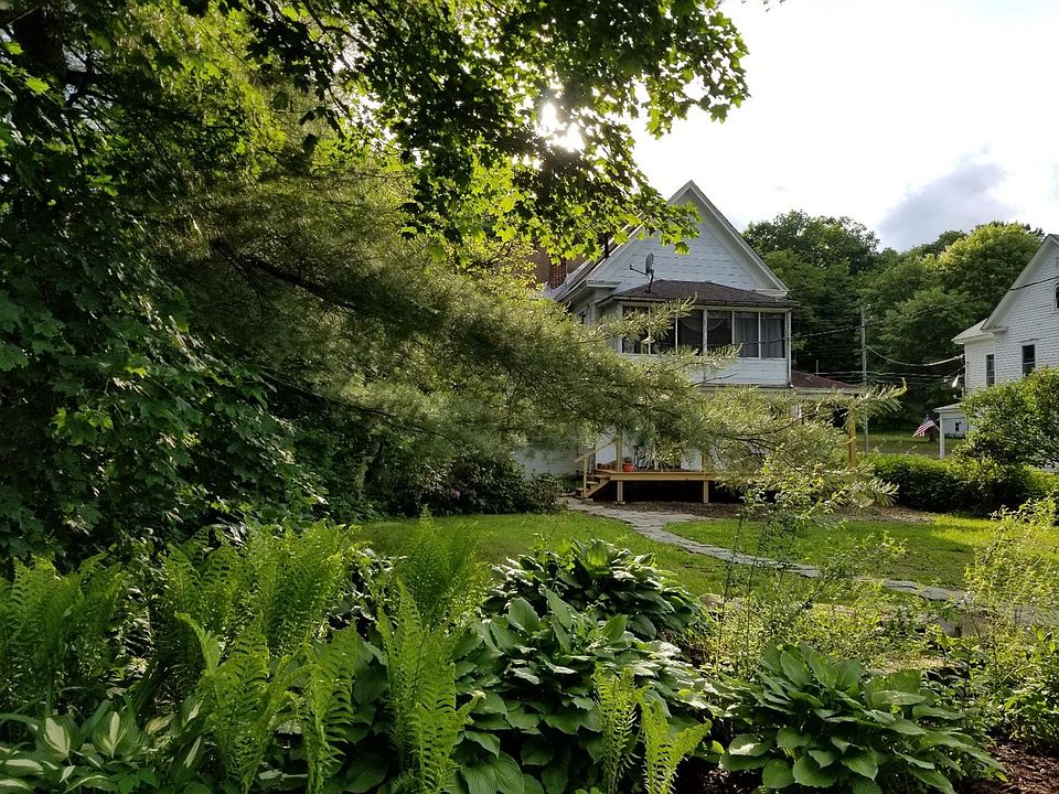 Solid colonial with 2 baths, large rooms, heating and electrical updates. Corner lot with thought-out landscape and plans for newly completed covered deck with stone patio walkway. Easy flow through with home with large open arch ways leading from living to dining and foyer area. Fireplace in living room and steam boiler easily heat this village home.