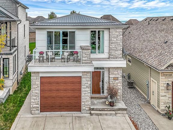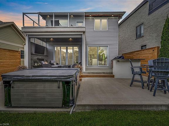 Custom Designed, Exquisitely Finished 2+2 bedroom, 3.5 bathroom Port Dover home located in the sought after South Coast Terrace gated community on the shores of Lake Erie. Residency in this exclusive enclave includes use of community inground pool, tennis/pickleball court, and private access to the lake with observation deck & stairs to beach area offering an irreplaceable setting & Lifestyle for you to Enjoy! Great curb appeal with stone & complimenting sided exterior, oversized concrete driveway, & entertainers dream backyard Oasis complete with screened in porch (retractable), outdoor gas fireplace, mounted TV, concrete patio, & hot tub. The masterfully designed interior layout features 2500 sq ft of distinguished living space highlighted by great room with open to above ceilings & gas fireplace set in tile hearth, gourmet kitchen with custom cabinetry, tile backsplash, live edge wood accents & eat at island, dining area, 2 pc bathroom & welcoming foyer. The 2nd level is highlighted by upper level deck, 3 pc primary bathroom & 2 bedrooms including primary bedroom with walkout to private terrace & lavish 5 pc ensuite with walk in shower, soaker tub & in suite laundry. The finished basement includes 2 additional bedrooms, rec room, & storage. Conveniently located close to restaurants, downtown amenities & entertainment, golf, spa, beach, marinas & more! Relaxing commute to 403, QEW, & GTA. Must view to appreciate the attention to detail, luxurious finishes & quality workmanship throughout. Experience & Enjoy Luxury Port Dover Living at its Finest!