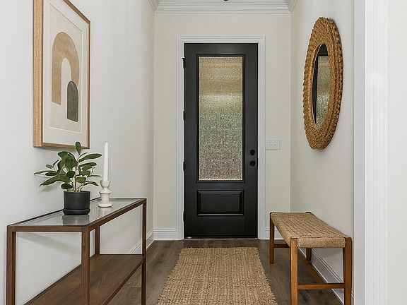Modern lightingAbundant natural lightQuartz countertopsLarge windowsNeutral finishesOversized foyerMultiple outdoor living spaces