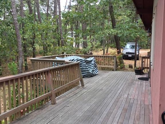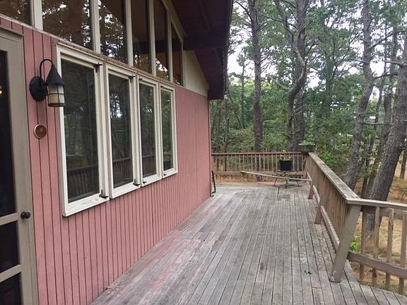 Affordable Wellfleet Getaway! Relax and enjoy the quieter side of Wellfleet in this privately situated 3-bedroom Adirondack style home on the oceanside of town. Nicely set amongst the pines and offering easy access to Duck Pond, a 20-minute walk away, and the northern terminus of the Bike Trail. Atlantic Ocean beaches include LeCount Hollow and Cahoon Hollow, a quick bike or drive away. Featuring a full bath with tub, wood burning fireplace, generous wrap-around deck, and hot tub for relaxing after a day on the beach. There's a Title 5septic suitable for 3 bedrooms, and a 4'' submersible well pump. Septic and water testing underway. The home is ready for your creative updating and is offered turnkey. A true diamond in the rough!