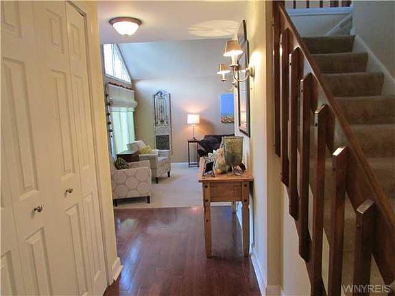 Lovely contemporary home within the Williamsville School district. This inviting home has beautiful hardwood floors and a two story brick fireplace. The kitchen offers granite counter tops, Marble backspash and stainless steel appliances. The sliding door leads you to a wonderful awning covered deck overlooking your private, fully fenced, deep back yard. 1st floor laundry room, 3 good sized bedrooms and a great loft area. partially finished basement with tons of storage space.