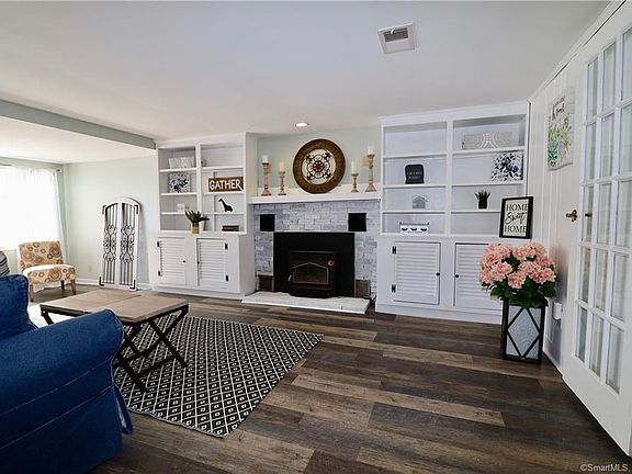 Don't miss out on this adorable bungalow style cottage with seasonal views of Coventry Lake Year round lake living with beach rights included in the low annual association fee. You will fall in love the minute you step inside The living room includes a wall of beautiful built-ins surrounding the fireplace; perfect for decorating and include storage as well. Natural light floods in the picture window with seasonal views of the lake. The kitchen offers plenty of cabinet and counter space with a charming eat-in space; a skylight & a picture window. Kitchen access to a ground level deck, perfect for outdoor dining & overlooking the huge back yard. Enjoy your morning coffee on your own private deck with slider access from your bedroom. Upstairs offers a small bedroom & attic access for storage & HVAC system, including Central Air Seasonal views of the lake can be enjoyed right from the comfort of your bed Enjoy ice skating & ice fishing in the winter and swimming, boating & fishing in the warm weather, all just steps from your cottage There's even storage for your kayak or canoe at the private beach (1st come/1st served. Check out the nearby historical Coventry Village with Shops & dining or head to Patriot's Park with picnic pavilion, grills, bandshell, basketball court & more Welcome to lake life at 80 Ridgewood Trail
