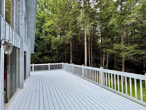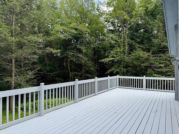 Set on 27 serene, wooded acres, this enchanting contemporary home offers the perfect getaway or year-round residence for those seeking privacy and a deep connection with nature. The property features a stream, rock outcroppings, ideal for hiking, exploring and year round recreation. Inside, the sun-filled great room welcomes you with a vaulted ceiling, a wall of glass that brings the outside in, and direct access to a generous deck. A stone fireplace and warm wood accents create a warm and inviting atmosphere and the open floor plan seamlessly blends the kitchen, dining, and living area. The first floor includes a bedroom and full bath, while the second level offers two additional bedrooms. Additional features include a full walk-out basement, oil heat, a new drilled well, and a passing Title 5 septic system. Nestled on a quiet country road along scenic Mill Brook, this property is close to Berkshire East Resort, 30 minutes to the Berkshires, 45 min to Tanglewood and Northampton!