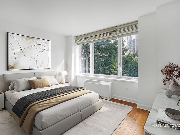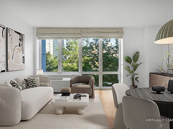 Serene, spacious, and sun-filled — this nearly 800-square-foot 1-bedroom, 1-bathroom residence at the coveted Rushmore Condominium delivers both comfort and sophistication on the Upper West Side. The open living/dining area is ideal for both entertaining and everyday living, while the sleek kitchen is outfitted with premium appliances and ample storage. The large bedroom comfortably fits a king-sized bed and includes generous closet space. The spa-like bathroom is finished with high-end materials, creating a serene retreat in the city.