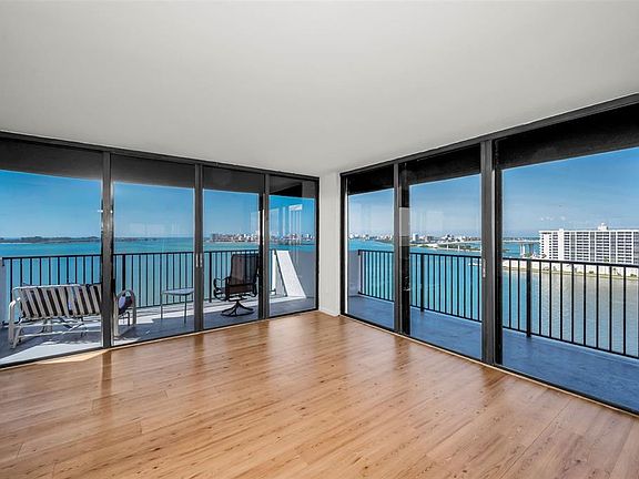 Clearwater - PRELUDE 80 - Some of the nicest panoramic water views on the West Coast of Florida. Tenth floor corner unit with wrap around balcony offering MILLION $$ VIEWS from every angle. 180 degree Westerly views of Bay, Intracoastal waterway and the Gulf of Mexico. Breathtaking sunset and waterfront views. Two bedrooms, two baths and 1,516sq.ft. of living area. Spacious living and dining areas all offering spectacular water views. Primary bedroom with a wall of windows offers amazing water views. This unit needs a complete makeover but is priced to reflect improvements needed. The complex offers a heated waterfront pool, a waterfront gazebo with BBQ grills, Clubhouse with full kitchen, lounging area, billiards area, exercise area, front lobby and more. The unit comes with a covered parking spot. Exceptional overall location, only minutes to Clearwater beach, restaurants, shopping, and more.