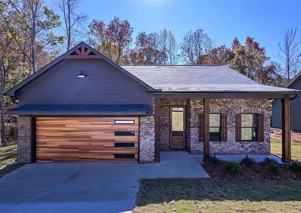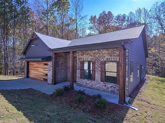 Welcome to this stunning new construction ranch home featuring 3 bedrooms and 2 bathrooms, perfectly situated in a highly sought-after community! The exterior showcases bold black siding accented by beautiful brick detailing on the front, complemented by black windows and charming cedar posts that create striking curb appeal. Step inside to discover an open concept living room and kitchen an ideal layout for entertaining family and friends. The kitchen features a large island with elegant white countertops and comes equipped with a dishwasher, microwave, and oven/range combo. The spacious primary suite offers a generous walk-in closet and a bathroom with a beautifully tiled tub/shower combination. The two secondary bedrooms are also well-sized, providing comfort and versatility. As an added bonus, the seller is offering a $5,000 incentive toward the buyer! Don't miss this opportunity to move into your brand-new home just in time for the holidays - schedule your showing today!