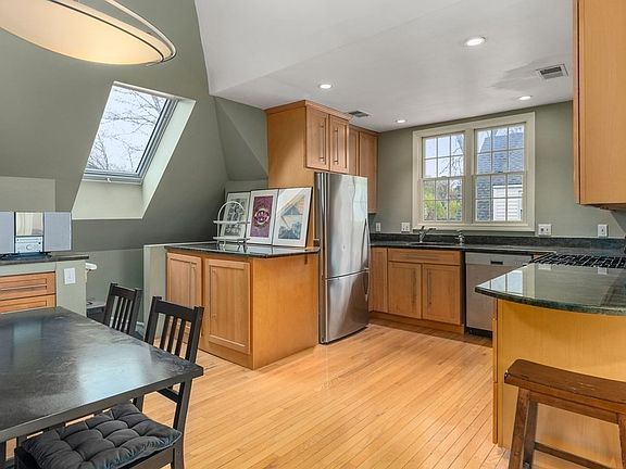 Welcome to this beautifully updated top-floor unit, ideally situated just steps from Roslindale Village and the commuter rail. Bathed in natural light from oversized windows and stunning skylights, this sun-drenched home offers a warm and inviting atmosphere throughout. The open-concept layout seamlessly connects the living, dining, and kitchen areas, all accented by gleaming hardwood floors. The freshly painted interior adds a crisp, modern feel, while the stylish kitchen features granite countertops and premium appliances. Enjoy the convenience of in-unit laundry, central A/C, and private basement storage. All appliances—including washer and dryer—are included in the sale. Easy on-street parking with no permit required makes city living a breeze.Whether you’re a first-time buyer, downsizer, or investor, this unit offers comfort, style, and unbeatable access to Roslindale’s shops, restaurants, and transit.