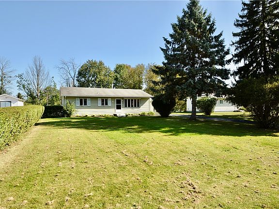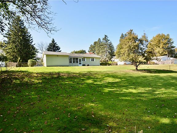 It features a professionally renovated bathroom. Maintenance-free vinyl siding. Freshly painted interior and large bay window creates a bright and welcoming atmosphere. Original hardwood floors. Enclosed porch overlooks a large fully-fenced rear yard with a storage shed. Newer, 150 amp electrical box. Full open basement. Enclosed porch and garage roof replaced in 2020. Virtually all new PVC plumbing in the home. Drain line from the home to the street replaced in 2020 with easily accessible cleanout. The 3rd bedroom w/closet could be used as a formal dining room as it has easy access to the kitchen. All new exterior doors and a new garage door. High efficiency furnace installed in 2007. Located minutes from 390, Wegmans, RIT, and Henrietta’s shopping and restaurant district. Low Henrietta taxes.
