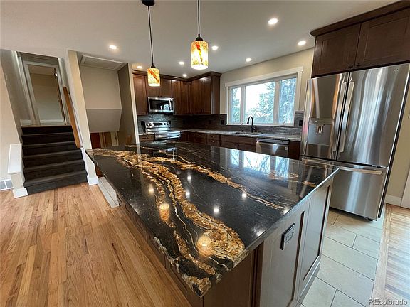 Masterfully modernized Martin Acres split-level on a corner lot less than two miles from CU! Thoughtfully updated from top to bottom, this move-in-ready residence showcases hardwood and bamboo flooring, remodeled bathrooms, a cozy wood-burning fireplace, plus a newer roof (2013), Marvin windows (2012), and a new furnace (2021). The heart of the home is a fully renovated kitchen, now featuring a large island, brand-new cabinets, granite countertops, stainless steel appliances, new lighting, and sleek tile flooring—perfect for both cooking and entertaining. Upstairs, you'll find three generously sized bedrooms and a full bathroom with a double-sink vanity. The lower level hosts a family room, laundry room, and half bathroom, offering additional flexible living space. Outside, the 11,800SF expansive backyard welcomes you with a concrete patio and a manicured lawn shaded by mature trees, creating the perfect setting for outdoor gatherings. Explore the trails and recreation opportunities that await you at nearby Martin Park, and enjoy quick access to US-36 for an easy commute. Nestled on a tree-lined street in a desirable Boulder neighborhood, this home is the perfect blend of charm, modern updates, and convenience! Showings begin 3/28/25