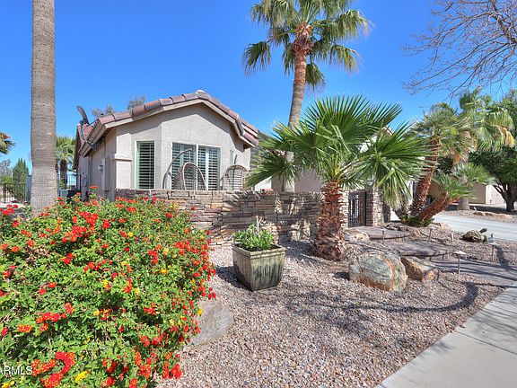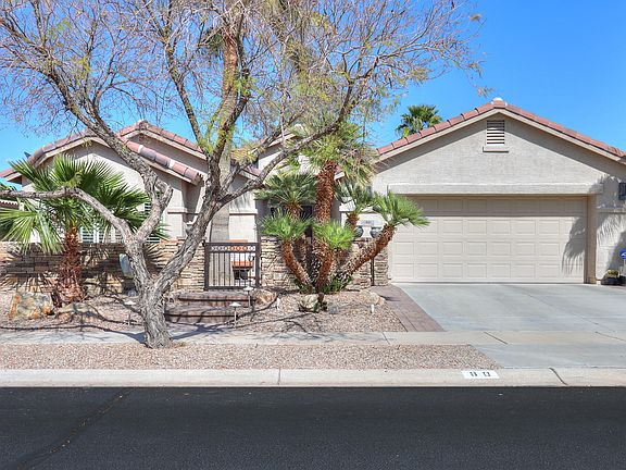 Gorgeous Pool Home features 2 BD, 2BA, Den & Golf Course Views! Thoughtfully designed w/ every detail throughout! Step inside from your private courtyard to find staggered tile flooring throughout the main living spaces and laminate in the bedrooms—no carpet! The updated kitchen is a showstopper with granite countertops, a tiled backsplash, beautiful white cabinetry with undermount lighting, SS Smart appliances & sleek pendant lighting. You'll love the garage's custom cabinetry & epoxy flooring as well as side entry with security screen. Out back, you'll fall in love with your own private paradise. A sparkling heated pool w/ spa, built in BBQ & firepit is perfect for entertaining. This home is the perfect blend of elegance and comfort & it's ready for you to move in & start living the go