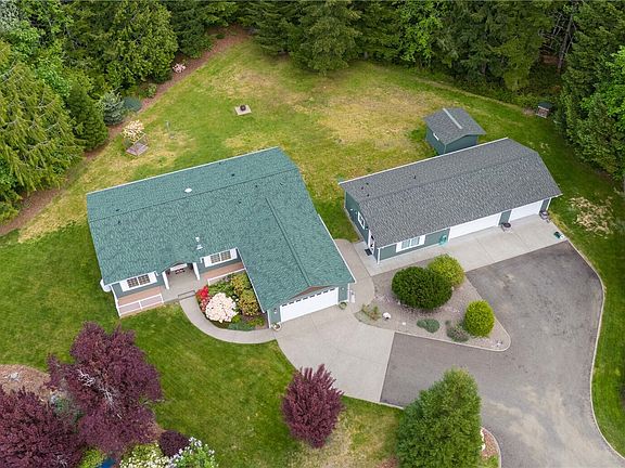 Discover pride of ownership at this immaculate 1940 sqft, 3 bed, 2 bath, single-story home on a quiet cul-de-sac. Nestled in a park-like setting with mature landscaping, this gem boasts an open-concept floor plan with split bedrooms, vaulted ceilings, and a primary suite featuring a 5-piece bathroom and walk-in closet. Enjoy a double oven, walk-in pantry, full utility room, and central furnace with a heat pump for AC. The new roof on home adds peace of mind. A separate 3-car shop includes a 1-bed, 0.75-bath mother-in-law suite (for a total of 4bd, 2.75 ba, and 5 car garage space). With space for a garden, RV, or boat, this meticulously cared-for retreat is just 20 minutes from Olympia. Birds and woodland creatures abound. Peace awaits.
