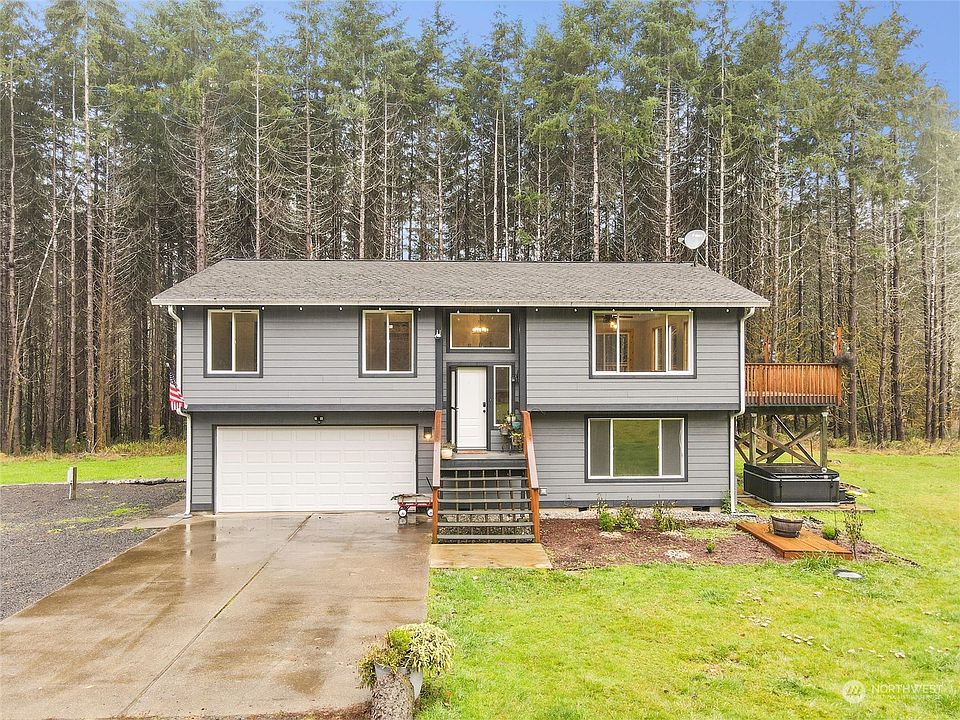 Welcome to your private retreat nestled on nearly 5 acres. Lot is level with plenty of room for all your ideas! The 3 bdr, 2.5 bth home is recently renovated w/ new floor coverings, paint, kitchen makeover w/ new cabinets and countertops & more. Breakfast bar makes for easy meals. Great nature views from the spacious living room. Primary bdr has an ensuite bth. The expansive newer deck is perfect for entertaining or soaking in the tranquility. Surrounded by evergreens & fruit trees, the beautifully landscaped yard provides room for gardening, recreation, or watching the wildlife. Explore nearby Hood Canal & hiking trails. This home combines the tranquility of rural living with easy access to Shelton’s amenities & Olympia.