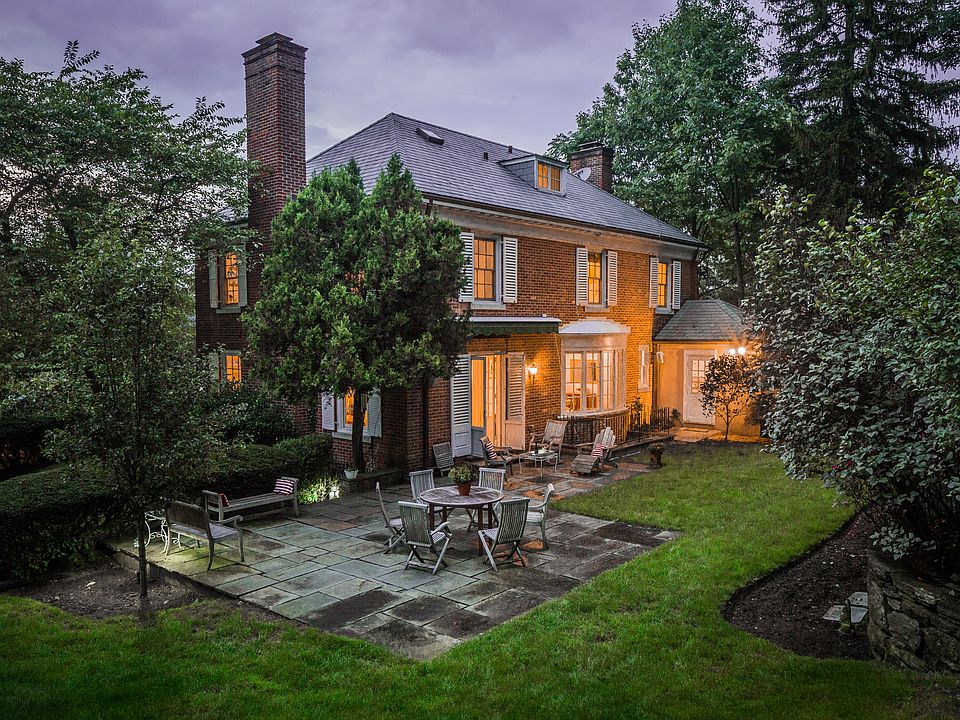Perched atop its Sagamore Road location, enjoy private sunsets from this handsome 1937 red brick colonial on a private half acre, adjacent to Bronxville's historic Hilltop and a quarter mile from the village center. A living room with fireplace leads out lovely French doors to a large stone terrace, flowers and greenery. The eat-in kitchen with granite island also accesses the terrace. A comfortable study with built ins and powder room complete the 1st floor. Upstairs, the master suite has a great WIC and updated bath; 3 additional BRs and a new hall bath. The lower level features a large family room with fireplace and a guest bedroom with legal egress, full bath and a sauna (BR/Bath/Sauna included in total SFTG) Nice windowed, finished bonus space completes the top floor. Central air, freshly refinished HW floors, new high quality windows throughout and an attached 2 car garage make this a compelling opportunity. All this plus an easy walk down to school, train and Bronxville shops.
