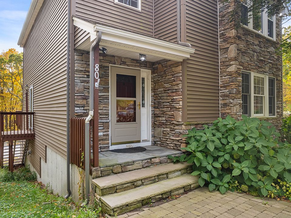 3 Master Suites! This is 80 Sashel Lane- a home that offers both room to grow and a sense of retreat. Set on 2.43 wooded acres at the end of a quiet cul-de-sac, this 3,200+ sq. ft. Colonial features four bedrooms and four-and-a-half bathrooms. With three primary suites- one on the main level and two upstairs- this home is ideal for multi-generational living or accommodating guests in style. Both upstairs suites include walk-in closets, with another bedroom offering a private sitting room, office, or play area. Another suite provides direct access to an additional bedroom or office space. A bright sunroom off the kitchen features three walls of windows and a door where light fills the inviting living area. The pellet stove adds energy savings, warmth, and character. The home includes four heating zones- two upstairs and two on the main level- for efficient, customizable comfort year-round. Outdoors, enjoy an expansive deck and spacious patio that seamlessly extend the living space into nature. The basement offers a two-car garage, maintenance room, and storage, while the attic provides additional space for holiday decorations and seasonal items. Step inside the 3D tour- this is the one you've been waiting for.