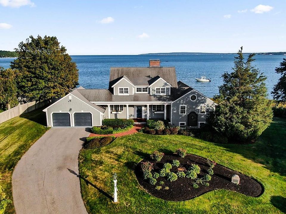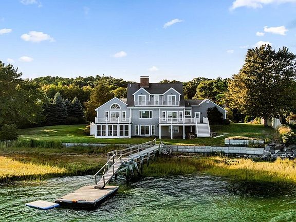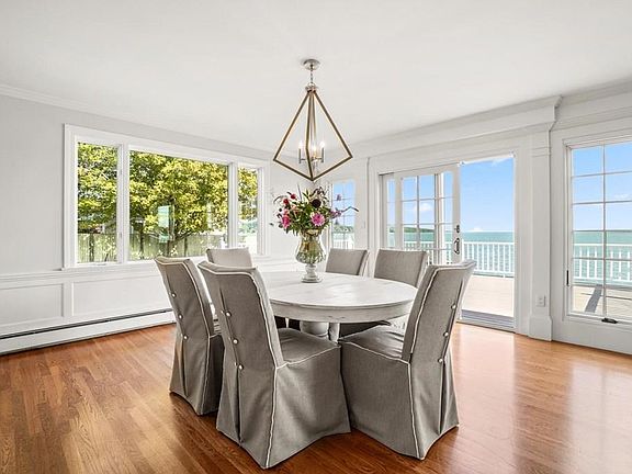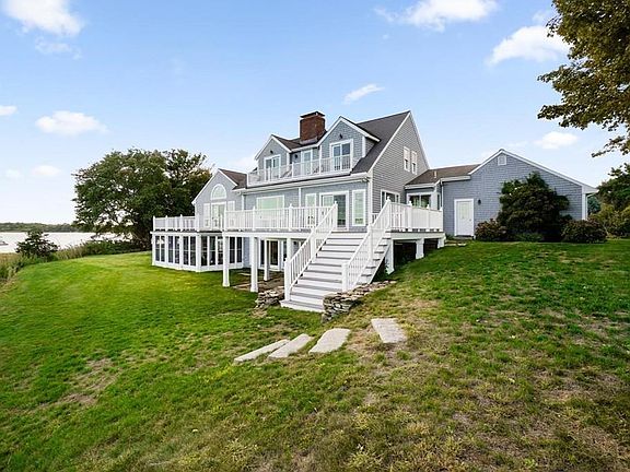 Magnificent water and coastline views abound from this chic 4 bedroom home in the highly coveted neighborhood of Seabury Point. A private setting on over an acre, with a dock, and over 400' of breathtaking frontage. Upon entry you are greeted by an open concept living room, dining room, kitchen and library, all with exquisite views. Custom built-in's, fireplace, and walls of windows, which draw your attention to the sparkling sea. Kick back on the expansive deck after a long day on the water and savor the ocean breezes. When evening falls, enjoy a glass of wine on your private balcony off the gracious owner's suite with generous walk in closet and luxurious bath. Venture upstairs and discover 3 large bedrooms, 2 with balconies overlooking the bay. There is also a full bath with laundry closet. Lower level is spacious and offers a bonus room with a stone fireplace, two other rooms, a full bath, and screened porch, all with extraordinary views. The ultimate Duxbury lifestyle awaits you.
