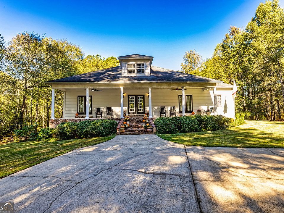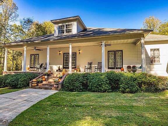 THIS CHARMING ACADIAN-STYLE HOME COMBINES TIMELESS FRENCH COLONIAL HERITAGE WITH A LAID-BACK SOUTHERN SENSIBILITY, PERFECTLY SUITED FOR GEORGIA LIVING. THE EXTERIOR IS DEFINED BY A STEEPLY PITCHED, GABLED ROOFLINE THAT SHELTERS A DEEP, WELCOMING FRONT PORCH, CREATING AN IDYLLIC OUTDOOR LIVING SPACE FOR HOT SUMMER DAYS TEMPTING YOU TO COME SIT A SPELL IN THE ROCKERS OR GLIDE IN THE PORCHSWING. CLASSIC VINTAGE BRICK SHOWCASES THE FOUNDATION & ENTRY STEPS. INSIDE, THE OPEN FLOOR PLAN FLOWS EFFORTLESSLY, CONNECTING THE LIVING, DINING, AND KITCHEN AREAS. ESCAPE TO THE PRIVATE SALTWATER POOL ACCENTED WITH STONE SURROUND & PARTY PAVILLION. ALL BEDROOMS FEATURE DOUBLE FRENCH DOORS LEADING YOU TO THE PRIVATE OUTDOOR SPACE FOR RELAXING. FOR ADDITIONAL OUTDOOR STORAGE, LARGE EQUIPMENT, OR WORK SPACE A 40X60 POLE BARN IS AL
