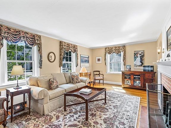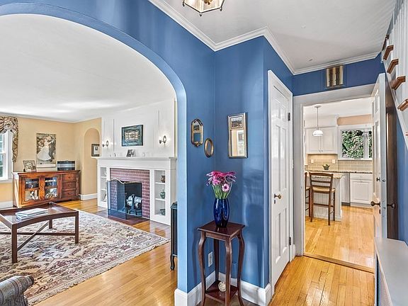 Quintessential East Side Colonial offers the right spaces, scale, updates, and features classic details: rounded doorways, molding, wood burning fireplace, paired china cabinets and a welcoming view from the hall to the lush yard. Nestled in a coveted neighborhood on a desirable street, this home allows you to entertain both inside and outside while offering secluded nooks for flex space needed today. Exuding the charm of its original era, LR and DR offer lovely original elements setting an elegant tone. EIK boasts a generous dining island, stainless appliances, including two ovens (a dual-fuel + a conv/micro), beverage fridge, and beautifully appointed backsplash, granite counters and lighting, while the sitting room opens to the deck and overlooks the flat yard. Primary BR hosts 2 closets & bath and is joined by renovated full bath and 3 bedrooms on the 2nd. Escape to the comfy LL family room & office areas that walk out to yard. Garage. Walk to town, bus, recreation, shops and more!