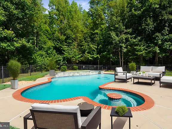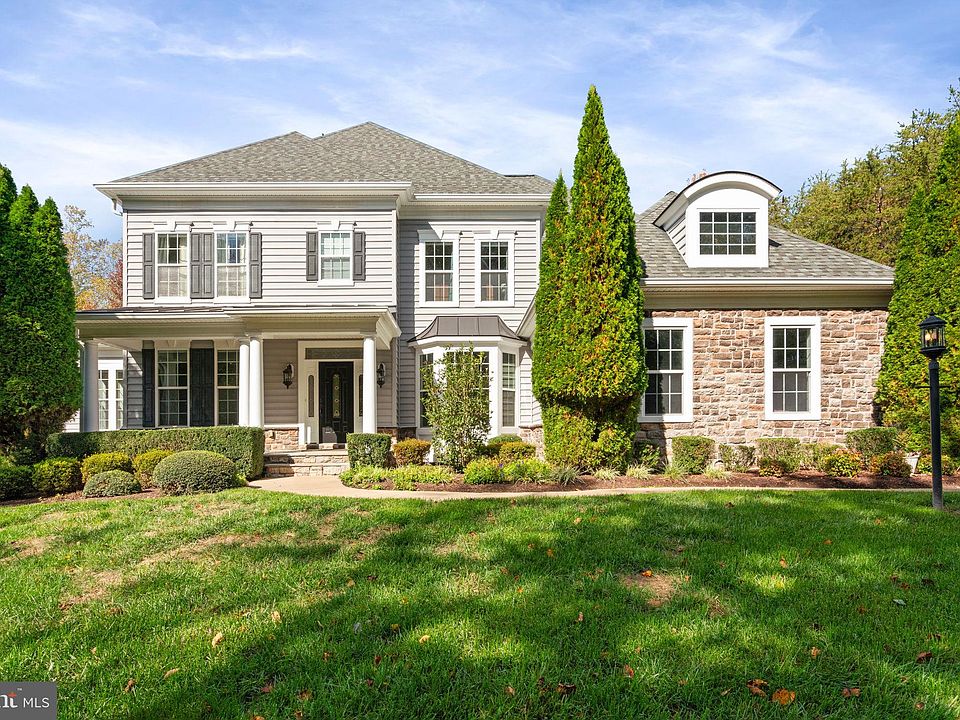 Set on 3.45 private acres in The Glens, one of Stafford’s most sought-after estate communities, this custom stone-and-brick Colonial blends timeless architecture with modern comfort across more than 7,000 finished square feet. Designed for those who appreciate fine craftsmanship, thoughtful design, and outdoor living at its best, every element of this residence speaks to refined quality. A welcoming covered front porch leads into a grand interior with hardwood floors, crown molding, and architectural detail throughout. The main level offers elegant formal spaces, including a living room with bay windows, a formal dining room with chair rail and crown molding, and a private study ideal for work or quiet reflection. The gourmet kitchen is the centerpiece of the home, featuring granite countertops, slow-close maple cabinetry to the ceiling, double wall ovens, gas cooktop, stainless-steel appliances, butler’s pantry, tile backsplash, and a large island with seating. The sunroom opens directly to the composite deck, creating an easy indoor-outdoor flow. The family room showcases a stone gas fireplace rising to the ceiling, coffered ceiling, and crown molding, offering an inviting space for gathering. Upstairs, the primary suite provides a tranquil retreat with a tray ceiling, sitting area, and two walk-in closets. The luxury bath includes dual vanities, a soaking tub, and a Roman shower with dual shower heads and tiled archway. Three additional bedrooms include one ensuite and a Jack-and-Jill configuration, all with generous closets. The fully finished walk-out lower level extends the home’s versatility with a recreation room, media room with built-in stereo, exercise area, and a custom wet bar/kitchenette featuring granite counters, backsplash, dishwasher, and refrigerator. A full bath and open layout make this level ideal for entertaining or long-term guests. Outdoors, experience your own private resort style oasis with a screened and covered patio, deck and in-ground pool with waterfall edge and hot tub, all surrounded by vinyl fencing, irrigation system, and mature landscaping. Located just minutes from I-95, shopping, and dining, this remarkable property offers the best of luxury country living in The Glens—where privacy, craftsmanship, and comfort come together seamlessly.
