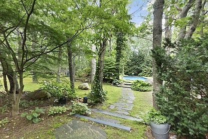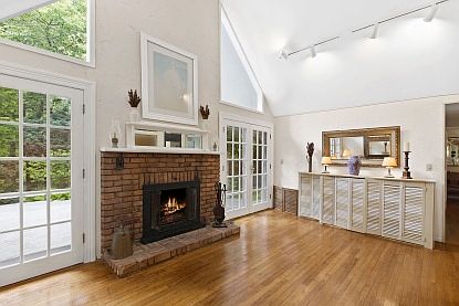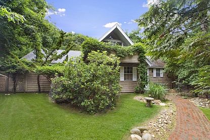 The great layout of this lovely home includes 3 bedrooms, 2 bathrooms and a second story loft den that includes an outdoor balcony with treetop views. The eat-in kitchen is outfitted with all new appliances. The living room features a cathedral ceiling, wood-burning fire place, and French doors that lead out to a multi-level decking overlooking the beautifully landscaped property. Mature evergreens and gardens create a private oasis around heated pool, bluestone patios, changing cabana, and outdoor shower areas. Original oak flooring, stucco walls, and wainscoting in the kitchen and bathrooms provide additional charm. Updated with an all new washer and dryer, furnace and hot water heater. Stone walls, brick walkways, lattice fencing, and antique cedar gates enhance the English Garden feel. This inviting and comfortable home is located in Hampton Waters, a Three Mile Harbor waterfront community with private beaches and docking facilities. Just Minutes to East Hampton Village and Amagansett as well as all ocean beaches.