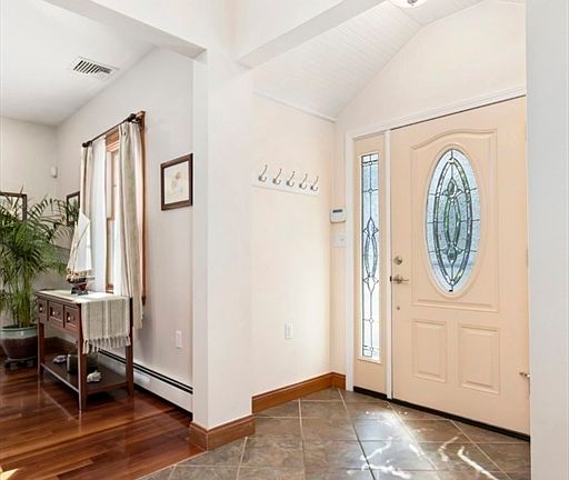 Welcome to this very meticulously kept, seaside home nestled in Quincy's most sought-after neighborhood! This 3-bed, 2.5 bath Colonial offers coastal living w/views of the ocean from sunroom & 2nd fl. primary balcony & just a short walk to private Merrymount assoc. beach & Wollaston beach. New roof & renovated throughout in 2008-2010 is an open foyer leading to dining/kitchen area w/plenty of cabinet space, 1/2 bath & deck to backyard. Cherry hardwood floors throughout continue to a bright living rm w/wood fireplace, open to sunroom w/several windows & views of the water. Upstairs you'll find a spacious primary bedroom w/walk-in closet & French door leading to balcony w/lovely water view. Full tiled bath & 2 more bedrooms; 1 leading to a walk-up attic w/plenty storage space. Add'l family room in basement w/3/4 bath & tile, elec. radiant heated floors, utility rm, workshop, laundry, sink & enclosed storage rm w/garage door entry. Close to all transit, Quincy Center & Perkins playground.