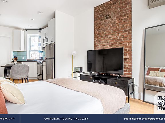 Show up and start living from day one in New York with this charming studio Blueground apartment. Youll love coming home to this thoughtfully furnished, beautifully designed, and fully equipped SoHo home. (ID #NYC477) The advertised rate of $5,150/month is the lowest available price, based on a 11 month(s) and 29 day(s) stay with a move-in date of June 1, 2026. Rates vary depending on the duration of stay, season, and other parameters. For exact pricing and additional pricing components, please visit our website and enter your desired move-in and move-out dates. The rate is applicable when billed upfront; it can be higher if billed in multiple payments. Brokers are welcome to reach out. Were you looking for an unfurnished lease? Try Blueground instead and upgrade from unfurnished to furnished living: - Furnished at rates comparable to unfurnished - No setup or furniture costs - save thousands - Move-in ready - save time, just bring your suitcase Designed with you in mind Thoughtfully designed with bespoke finishes, modern furnishings,and a fully equipped kitchen,youll enjoy that Im home feeling with this Blueground apartment. Whether youre lounging in your sophisticated living room streaming the latest and greatest entertainment on the smart TV or premium wireless speaker, or getting some well-earned rest on the superior quality mattress with luxury linens, youll fall in love with everything this SoHo apartment has to offer. Sleeping arrangements - Queen Bed, 63in/160cm Amenities Building amenities unique to this studio apartment include an on-site - Dryer in building - Washing machine in building - Pets allowed Arrival and ongoing support The entire apartment is yours to enjoy! Throughout your stay, youll have access to our Client Experience team through the Blueground App. You can schedule additional cleanings, submit maintenance requests, and view our neighborhood recommendations with just a few taps. Well share all details upon confirmation of your stay. Ideally Located This furnished apartment is located in SoHo (which is short for South of Houston Street). Full of designer boutiques and high-end art galleries, this Lower Manhattan neighborhood is a popular destination for both locals and out-of-towners. Known for its elegant cast iron facades and cobblestone streets, it is a hot spot during the night or the day. The unique buildings set this neighborhood apart. In fact, it has been said that SoHo has the greatest collection of cast-iron architecture in the world. The fashionable crowd that frequents the area enjoys the countless shopping and dining options. The various bus and subway lines keep SoHo easily connected with the rest of the city. Using the subway, Times Square is just 20 minutes away. Other things to note This Blueground apartment has flexible lease options, allowing you to book it for one month, a year, or more. Pets are welcome, though weight limits and breed restrictions apply and may incur fees. Please keep in mind that this is a walk up building. Brokes CYOF. We take great pride in ensuring every photo displayed is shot in our own units with our actual furnishings. That said, we regularly refresh our decor and furniture arrangement, which may differ from whats pictured.