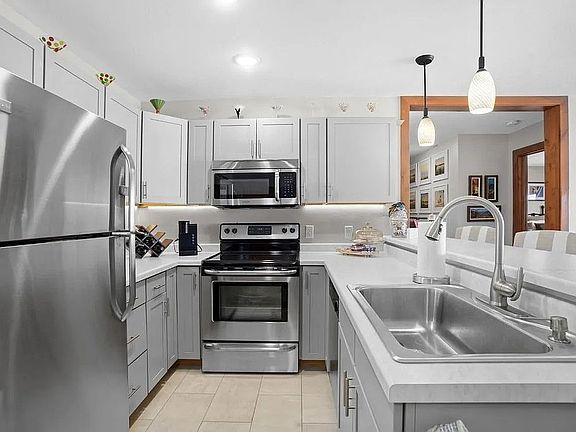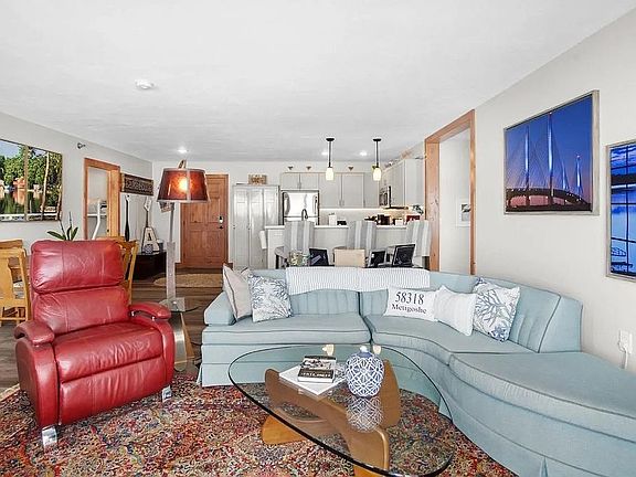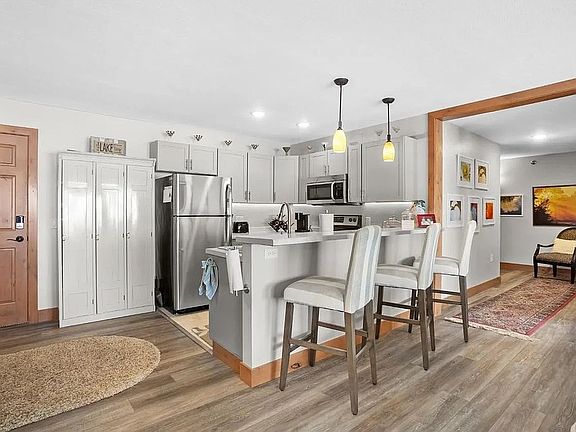 Pristine Condo w/Sunset Views on Lake Metigoshe Vacation or living at the Lake has never been easier! This newly renovated one bedroom, one bath condo is centrally located on Lake Metigoshe with easy lake access via the gentle west sloping lawn making it the perfect solution to your year-round getaway. The generous layout sleeps 5 and seamlessly blends modern sensibility with nature, your days at the lake will be filled with living outside / inside. Inside you are greeted with gracious living area including an open kitchen with top-of-the-line stainless steel appliances; the master bedroom with queen bed of course has lake views; an alcove off the living room provides that perfect space for a home office and a bonus room large enough for the laundry area, studio and a sleeping space equipped with a twin over full bunk bed. Located in formerly the Twin Oaks Resort, this unit has been fully renovated with a "relax you are at the lake vibe" complemented by handpicked photographs to help you slip into lake time. A furnished balcony gives you amazing views and a place to relax and take in the lake air. Two parking spaces are provided with the condo to make sure you have "no wasted days!" The condo fee is $475/month includes: beach and day dock use, lawn care, snow removal, building maintenance/insurance, manager living on site, 2 parking spaces, electricity, heating, cooling, water, trash, and common area maintenance/use. Property taxes 2023 were $2,808/year.