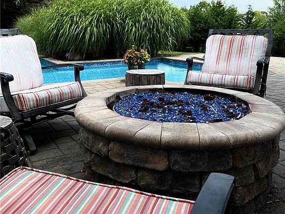 Backyard includes built in pool, patio, gas firepit, outdoor living space including 600 sqft of covered patio with lighting/fans/TV hookup.