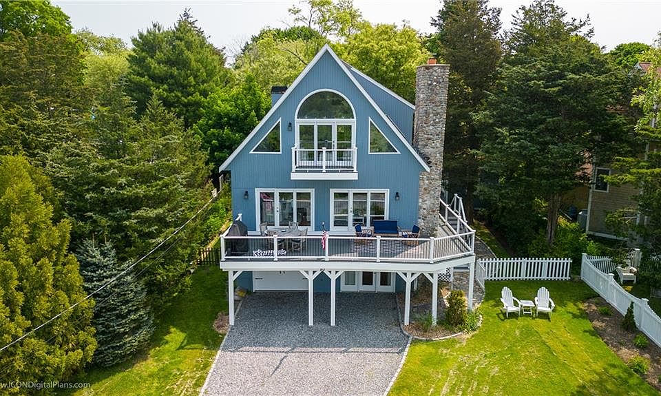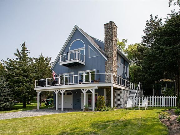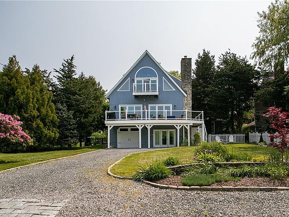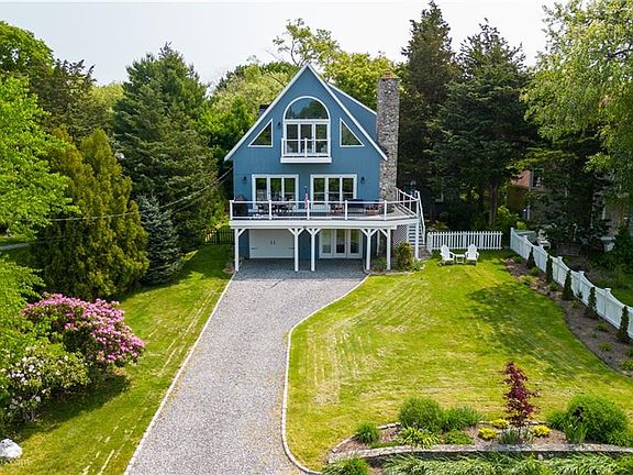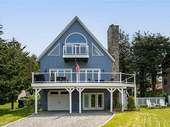 Outstanding, expansive water and sunset views of the Narragansett Bay from the 2 large decks. This bright and airy home is located just steps from the water with a deeded right of way access directly in front of the house. The property is less than a mile to Head's Beach. The large wraparound deck is the perfect viewing spot to watch the Annual Newport Regatta and the Fourth of July fireworks right from your very own home. Ideal location for kayaking and paddle boarding. You will love the vaulted and cathedral ceilings, the 30' stone fireplace that has recently been converted to gas, and the outdoor shower. The interior and the exterior of this home has recently been professionally painted. Among the many improvements are the new landscaping, new driveway and walkways, new patio with new 6 person hot tub, new decking with new railings, new roof and skylights, new gas grill that is hooked up to the gas, newly refinished hardwood floors, new Bosch induction stove, new bath and laundry area on the first level, newer heat pump/AC system, newer water treatment system, newer furnace. There is a 200 square foot (14 foot structure height) outbuilding that is currently being used for extra storage; however, it could be easily converted to an office, studio or workout space. The sellers are open to selling the home furnished. This property is a pleasure to show!