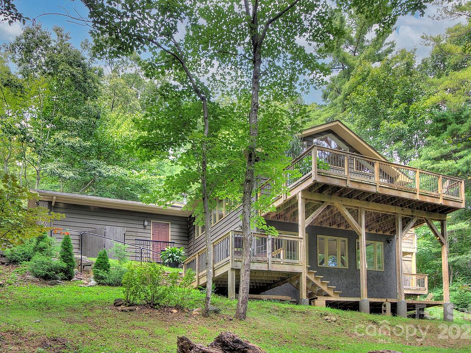 Beautifully updated home in a private, wooded setting! Enjoy cool mornings on the expansive decks sipping coffee and listening to the birds. When the leaves have fallen, a beautiful winter mountain view opens up to the south, bringing a sunset glow to the backyard. A 2018 remodel added a main level family room with wall-to-wall windows, bringing an open, treehouse feel to the living areas and kitchen. A lower level bonus room with full bath and inside/outside entrances was also added, and piping is in place to add a kitchenette. The grounds feature beautiful stonework and many native plantings and perennials. The home is not in the city limits, so no city taxes, and currently there are no rental restrictions - it would make a great second home or investment property. If privacy is what you seek, but you want to be less than ten minutes from everything downtown Asheville has to offer, you've found it!