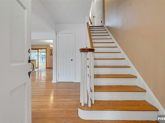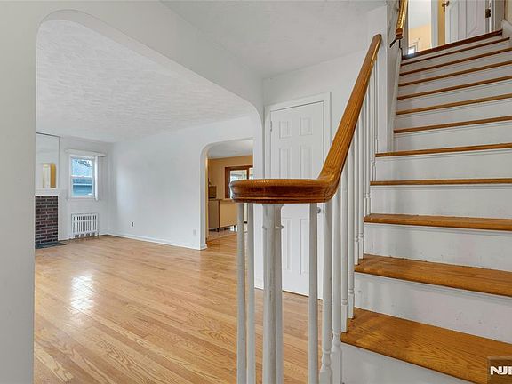 Welcome to this charming Cape Side Hall Colonial nestled on one of Teaneck's most picturesque tree-lined blocks. Situated on a large lot just under 1/4 acre, this beautifully maintained and landscaped home offers warmth and classic appeal with wood floors, a bright living room featuring a large bay window and fireplace, and a formal dining room leading to a lovely kitchen with island. Off the kitchen, sliding glass doors open to a sunny windowed sunroom with access to the backyard and expansive lawn. The main level includes a full bath and two spacious bedrooms. Upstairs are two additional bedrooms and a large hall bath. The finished basement provides extra living space, laundry room, cedar closet, and backyard access. A two-car garage and manicured grounds complete this very well-kept home. Conveniently located near shopping, schools, houses of worship, parks, and NYC transportation. True pride of ownership!
