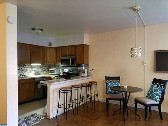 Open concept condo filled with natural light and coveted modern upgrades. Brand new Samsung and LG kitchen appliances. New professionally polished hardwood floor throughout. Expansive open concept breakfast nook, dining room, and living room filled with natural light from adjacent large sunroom. Two large bedrooms with plenty of closet space. New storm proof windows in bedroom. Large closets with high ceilings in both rooms with walk in closet as well. Laundry room with washer dryer hookup OR full service laundry room available in complex. Close to transportation, local farmer's market, grocery store, and airport. Elevator operated. Enjoy the outdoor pool and grilling area in the summer time. Or cultivate your green thumb with a garden plot available onsite. Enclosed garage and outdoor parking available. Quiet community perfect at any life-stage when looking for comfort, space, and easy commute. William Penn School District. $5000 option consideration, $1200 per month with a $250 per month credit. It could be yours!