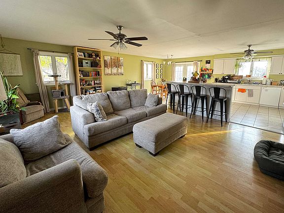 This light, bright, beautiful house is ready for you to move right in and has so much going for it! Open living/dining/kitchen with an island, ample cabinets, a cozy pellet stove, and french doors leading to a good sized deck - perfect for sipping morning coffee, grilling, or enjoying a glass of wine at the end of the day. There are also 3 bedrooms upstairs, a full, recently remodeled bathroom, and plenty of closet space. Downstairs you'll find a wood stove, 1/2 bath, laundry, a "bonus" room that could be used as anything from extra storage to an office to a guest space (it's currently a home gym!), and direct access to your 2-car garage. The yard gets good sun, and there's lots of room to garden and play. The owners have taken great care of this home and have made important improvements such as a brand new roof in 2024. Come see this beauty for yourself.