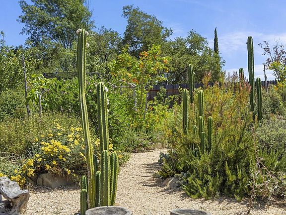 Welcome to 80 Watkins Way, a beautifully curated residence in the heart of Ojai that offers the best of California indoor-outdoor living. This 3-bedroom, 2-bathroom home is designed for comfort, wellness, and connection ~ all set against the backdrop of Ojai's famous 'pink moment' sunsets. The open floor plan seamlessly connects the main living and dining areas to the outdoors, creating a light-filled space perfect for entertaining or relaxed family living. Step outside into your private oasis where established succulent gardens surround a cedar hot tub and infrared sauna, offering a truly restorative retreat at home. Mature plantings and thoughtfully designed landscaping evoke a sense of peace and timelessness, while a central courtyard and expansive yard provide space for children to play freely complete with a trampoline and a charming chicken coop for fresh eggs each morning. Inside, the primary bedroom is a tranquil escape with direct access to the garden, while two additional bedrooms are ideally suited for children, guests, or creative workspace. The oversized two-car garage offers ample room for vehicles, storage, or workshop potential, making this home as practical as it is picturesque. Located in a quiet, sought-after Ojai neighborhood, this property invites you to settle into a slower pace and enjoy life's simple pleasures from garden-to-table living to warm evenings spent under the stars. Whether you're gathering with family, hosting friends, or simply soaking in the sunset views, this property delivers a lifestyle that feels both elevated and grounded in nature.