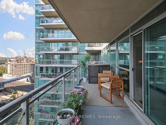 Live in this Junior 1Br In The Heart Of Liberty Village! This West Facing 'Aqua' Model Offers A Huge Separate Balcony. Upgraded Engineered Hardwood. Designer Kitchen With Granite Counter Tops. Steps to TTC, the Lake, Metro, Lcbo, Pubs, Restaurants And Coffee Shops.