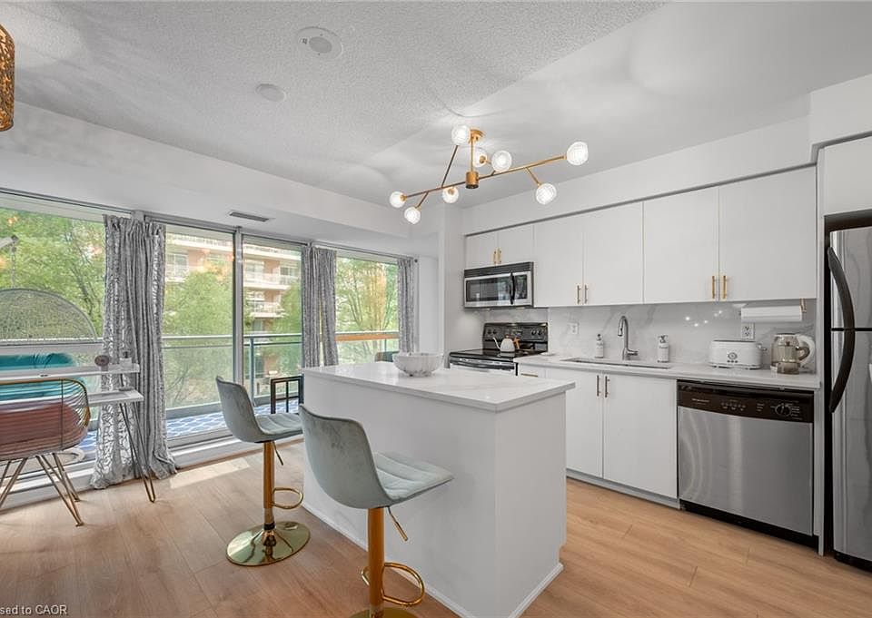 Private balconyOverlooking courtyardFloor-to-ceiling windowsOpen-concept layoutContemporary kitchenGranite countertopsLarge centre sit-up island
