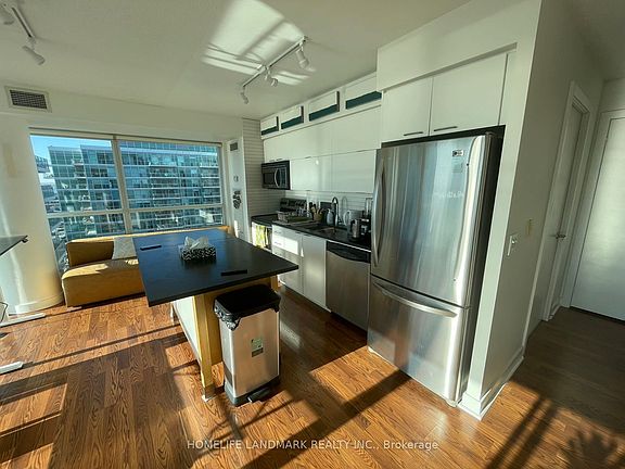Fabulous 2 Bedroom, 1 Bath Condo In Trendy Liberty Village. Open Concept Living/Dining/Kitchen With Walkout To Large Balcony Overlooking Ontario lake. Good Sized Bedrooms. Fabulous Building Amenities Include A Gym, Media Room, Party Room, Concierge, Visitor Parking And Much More! Walk To Metro, Shops, Ttc And King West. Close To All Amenities, & Transportation.